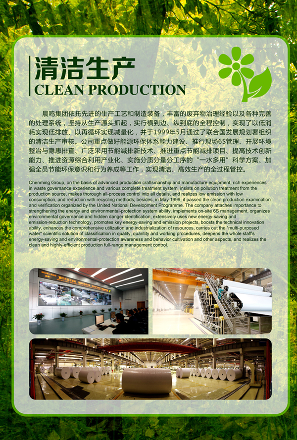 晨鳴集團堅定不移地走科技含量高、資源消耗低、環(huán)境污染少的新型工業(yè)化道路,大力實(shí)施綠色低碳戰略,努力做到經(jīng)濟建設與生態(tài)建設一起推進(jìn),經(jīng)濟競爭力與環(huán)境競爭力一起提升,物質(zhì)文明與生態(tài)文明一起發(fā)展,在保護環(huán)境中謀求發(fā)展,在科學(xué)發(fā)展中提高環(huán)保水平,實(shí)現經(jīng)濟效益與環(huán)境效益的“雙贏(yíng)”。